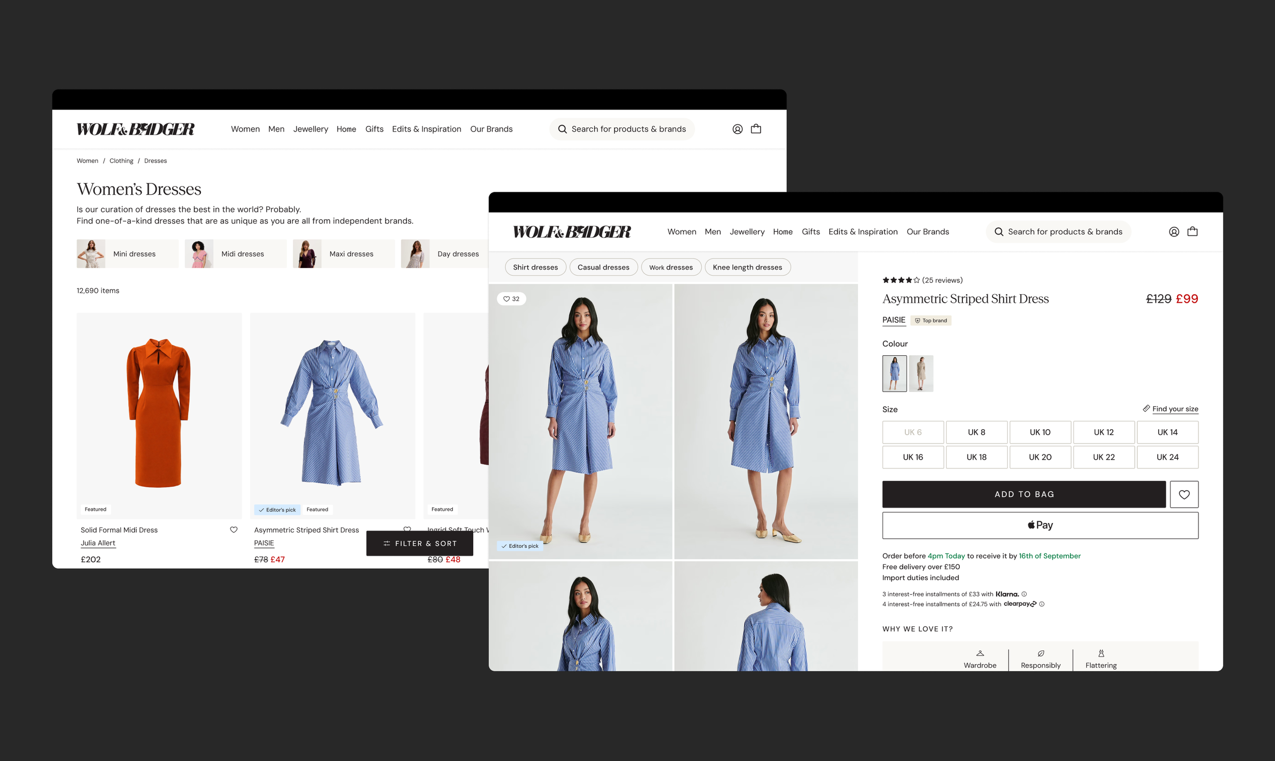 I’m an end-to-end Senior Product Designer, delivering forward-thinking digital design solutions. I have over eight years of professional design experience spanning e-commerce, healthtech, and fintech industries. I currently work at Wolf & Badger, a global marketplace for independent and ethical brands, where I design and evolve customer-facing digital experiences. I embrace problem-solving, simplicity, conceptual rigour, refined aesthetics, and, most importantly, user-centric design.